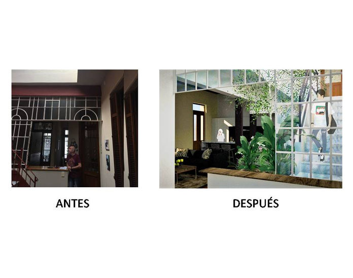 La idea consistió en reorganizar la vivienda en torno al patio, y convertirlo en el pulmón verde de la casa. La planta baja propone un gran estar-comedor con cocina integrada, aprovechando las visuales que permiten los grandes y antiguos ventanales existentes.